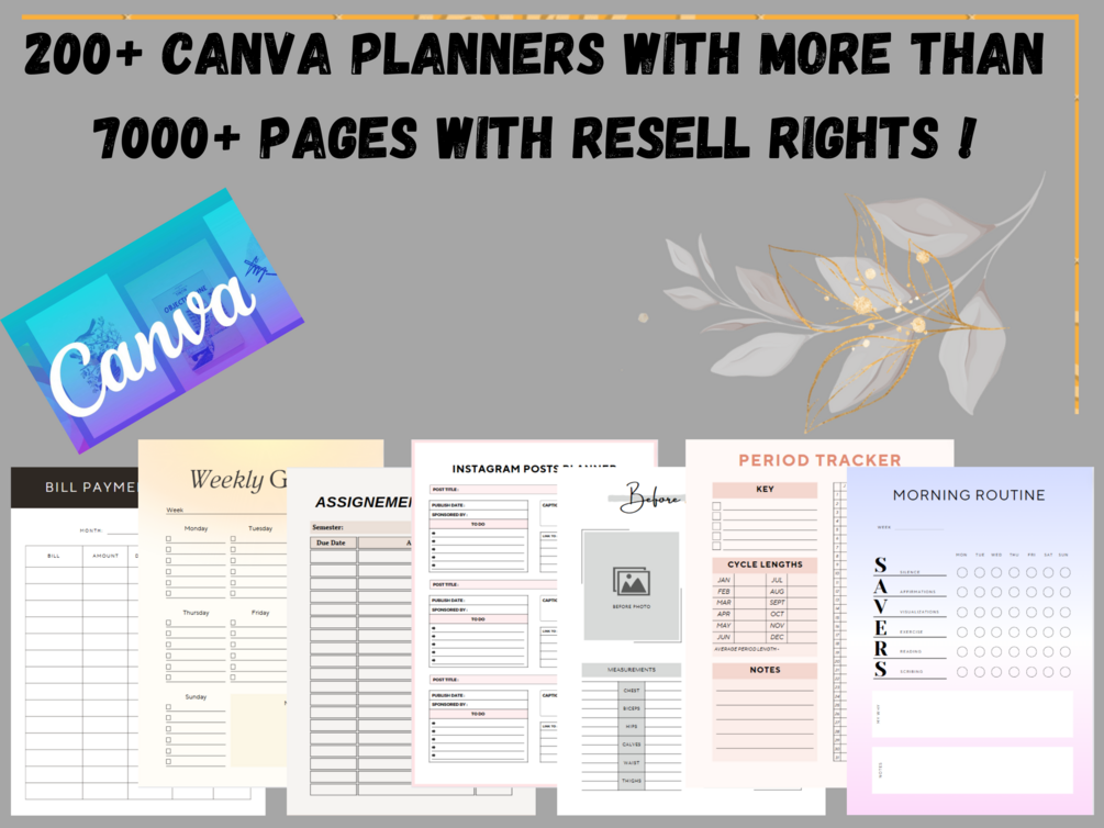200+ Canva Planners with more than 7000+ pages with resell rights
